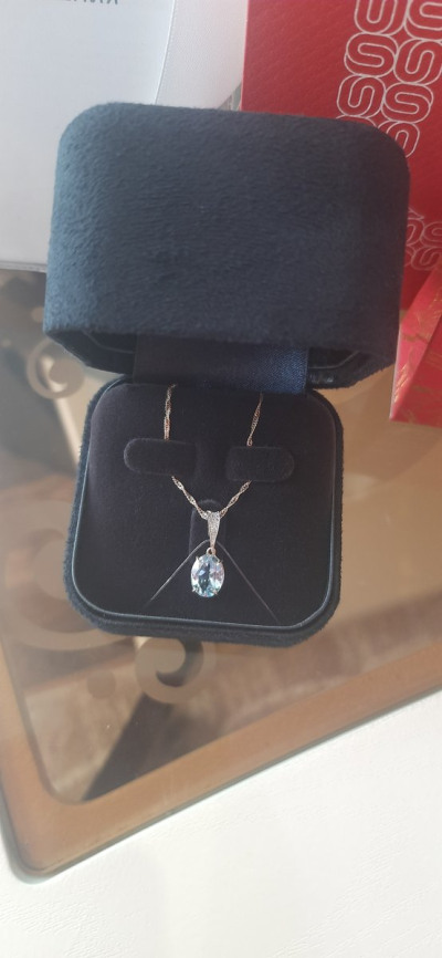 Топазы — моя любовь. Подвеска аккуратная. Правда, бриллиантовую крошку почти не видно, она и не нудна там особо на мой взгляд, слишком мелкая. Но все равно красиво.
