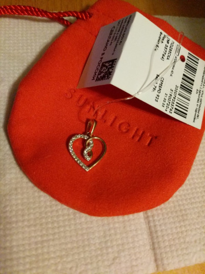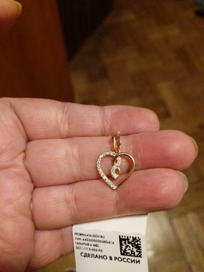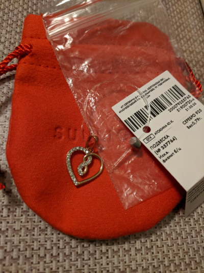 Симпатичная серебряная подвесочка в виде тонкого полого сердца с бесцветными фианитами по левой стороне; лёгкая (0,79 г.). Внутри сердца помещена не то"восьмёрка", не то карнавальная маска, также с фианитами. В каталоге подвеску заметила давно, она сразу мне понравилась, не понравилась только её цена, пришлось подождать, когда она снизится до адекватной, и вот появился подходящий момент для покупки. Изделие очень удобное во всех отношениях, стильное, уместное и на каждый день, и для торжественных мероприятий; к покупке рекомендую..