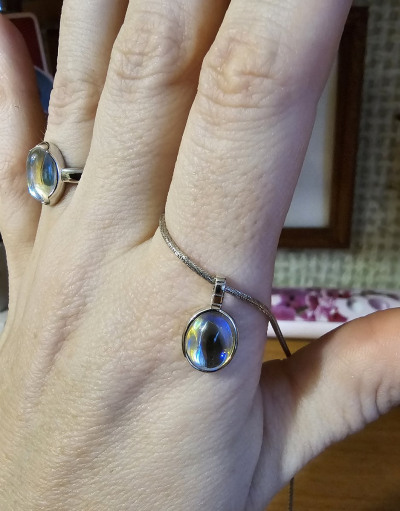 Нравится эта подвеска. Докупила кольцо и серьги. Подвеска немного меньше по размеру и овальная но смотрится всё вместе как комплект