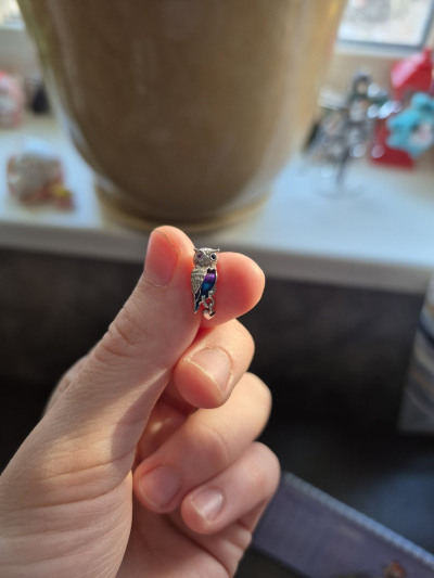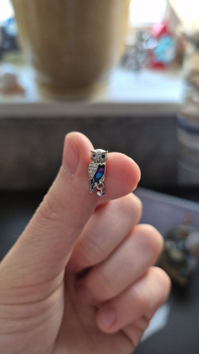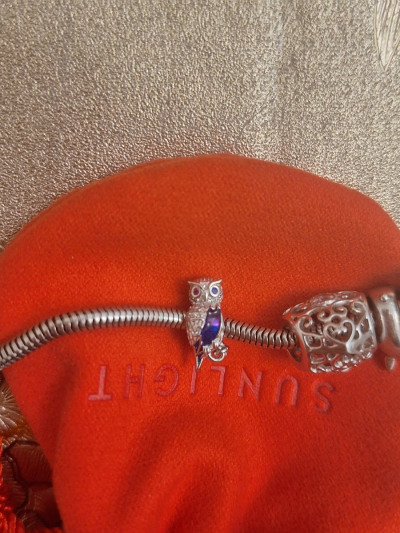 Сова очень красиво и детально выполнена. На свету переливается. Смотрится на браслете замечательно.