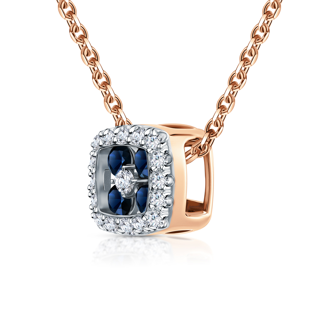 Золотая подвеска с бриллиантами природными и сапфирами природными