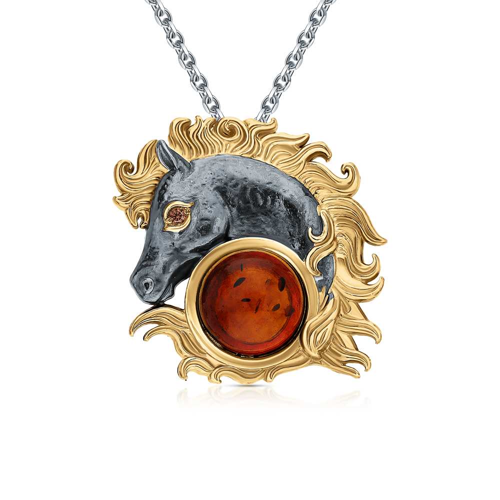 Серебряная подвеска с фианитами и янтарями природными