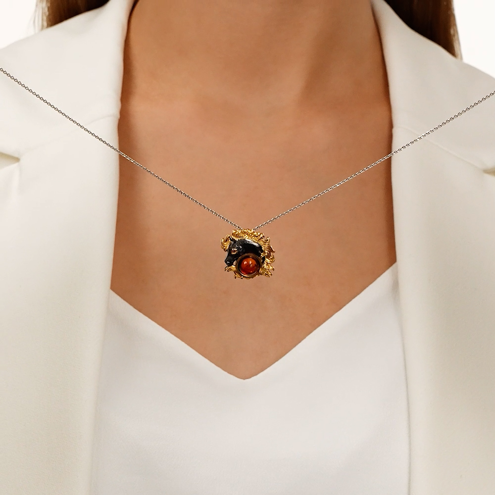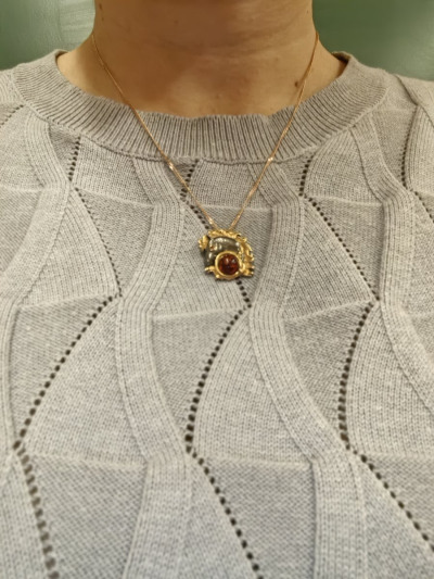 Очень красивый кулон, довольно тяжёлый. Одинаково красиво смотрится как с золотой так и с серебряной цепочкой .