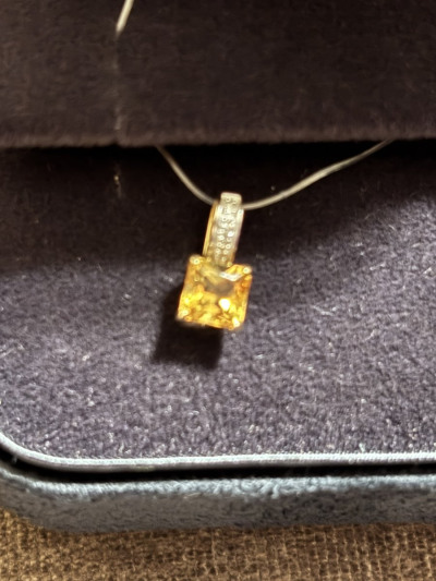 Очень красивая, стильная подвеска. Нежная дорожка из бриллиантов и яркий желтый цетрин в желтом золоте.