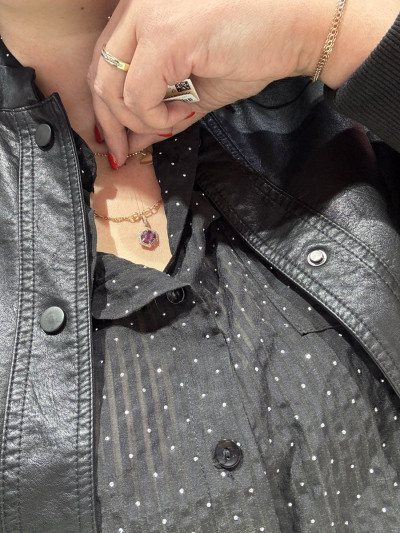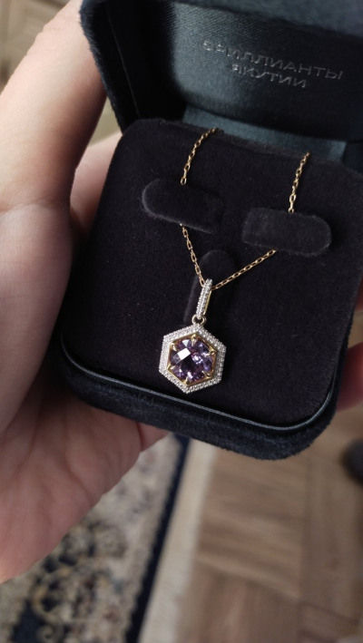 Золотая подвеска с бриллиантами природными и аметистами природными