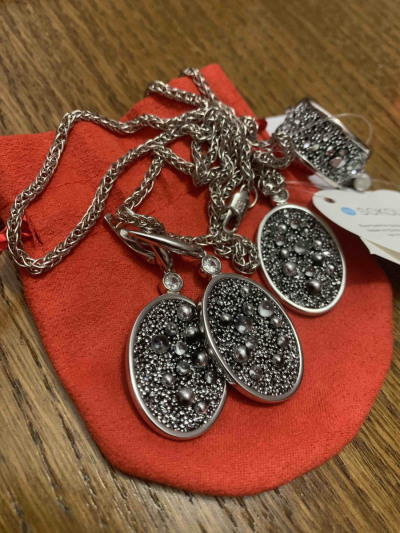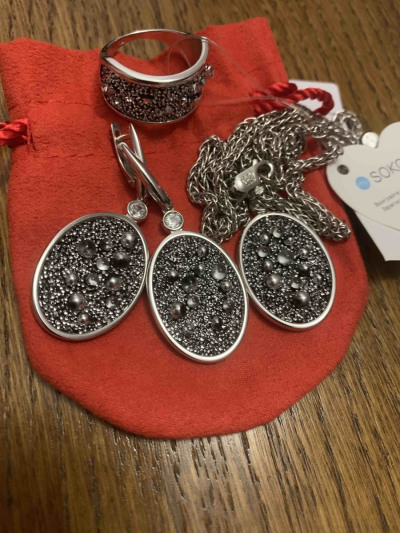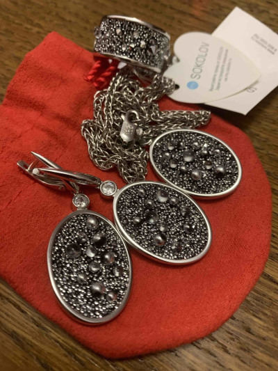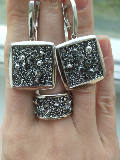 У меня уже есть в таком исполнении серьги, подвес, цепочка подобрана тоже в Санлайте. Кольца моего размера не было в магазине на тот момент. Заходила на сайт, но с нужным размером прям беда какая то... У меня широкая косточка, поэтому размер не маленький к сожалению. И тут, удача прям! Есть мой размер, последний. Конечно же я заказала, очень довольна. Комплект получился шикарный просто! Рекомендую к покупке однозначно,это очень красивое украшение. И еще, здесь изделие дешевле чем на сайте производителя. Спасибо за скидки, и доставку в квартиру.