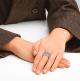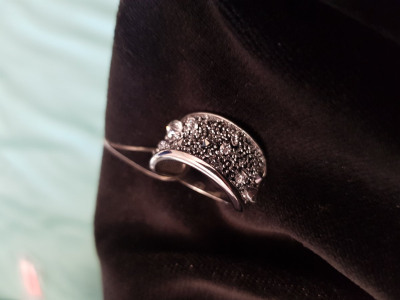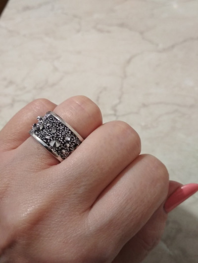 Нарядное кольцо. Хорошо сочетается с другими украшениями, которые здесь покупала. Кристаллы красиво поблёскивают. Удобно заужена шинка с обратной стороны.