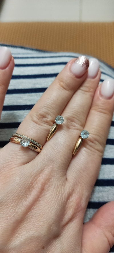 Люблю топаз за его голубую прозрачность.Очень красивое кольцо.Приобрела комплектом с сережками.Мой любимый гарнитур- и в пир,и в мир!
