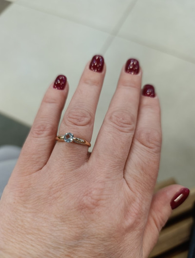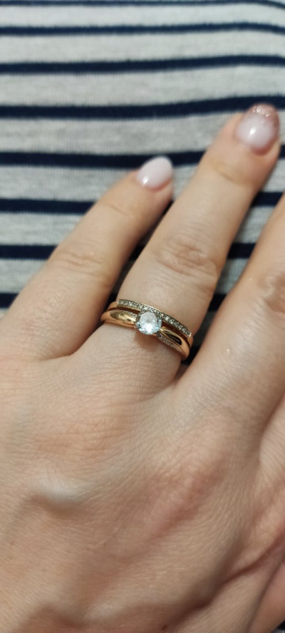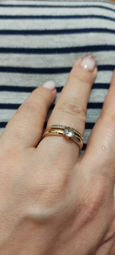 Удачное колечко на каждый день. Хорошо комбинировать с обручальным кольцом. Топаз блестит красиво, цвет идеальный.