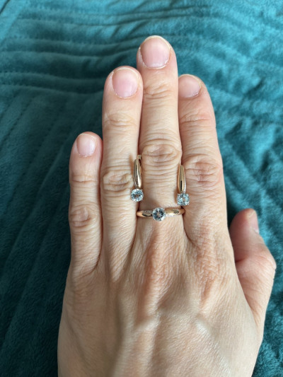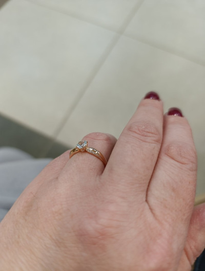 Купила кольцо в дополнение к таким же серьгам. Очень понравилось колечко, нежное изящное. Немного не угадала с размером, теперь ношу с другим, как второе, чтоб не потеряла.