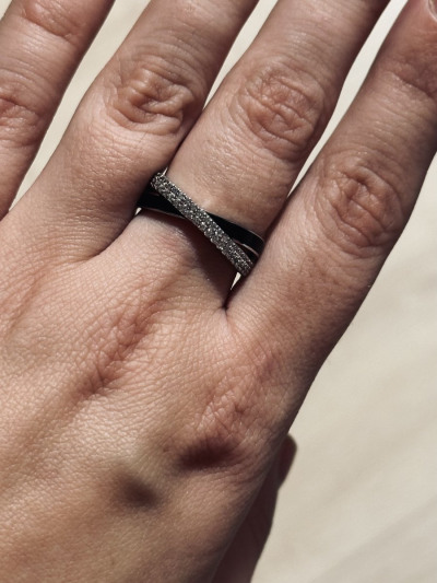 Кольцо влюбило в себя с первого взгляда. Заказала в размере 17,5. Очень выигрышно смотрится сочетание черной эмали и россыпи фианитов. Заказ оформлен в брендированный мешочек и коробку.
