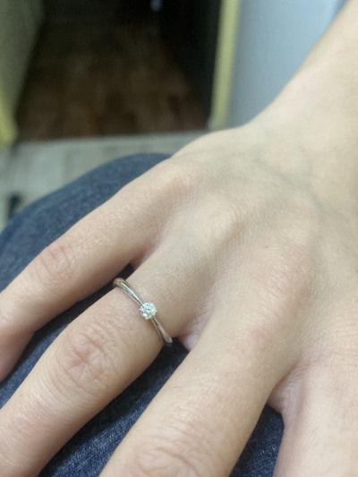 Очень милое колечко,шикарно блестит бриллиантик ✨Быстро царапается,за это снимаю 1,звезду