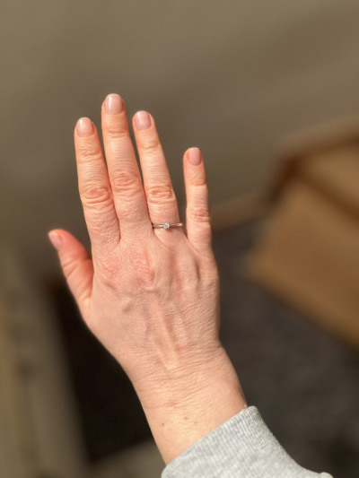 Давно искала пару для своей дорожки. Это кольцо, на мой взгляд, стало идеальным компаньоном. Лаконичное и стильное, бриллиант красиво переливается.