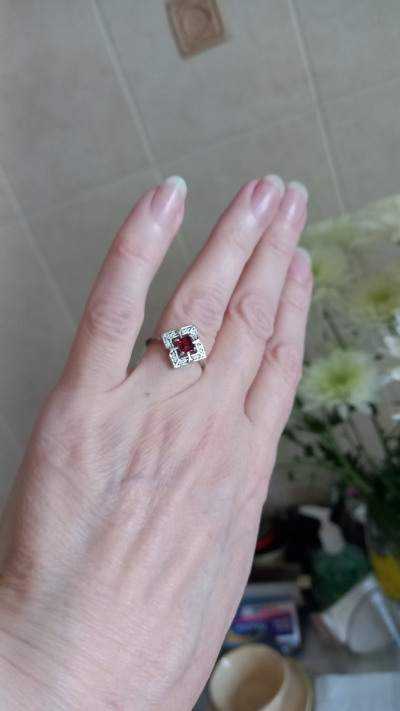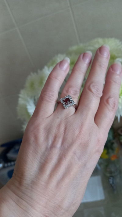 Колечко покупала к гранатовому комплекту,оно отлично подошло,но также в планах купить сережки в комплекте с этим кольцом.Размер 18-село идеально,гранат не маленький,фианиты сверкают,колечко классное,ралует глаз!