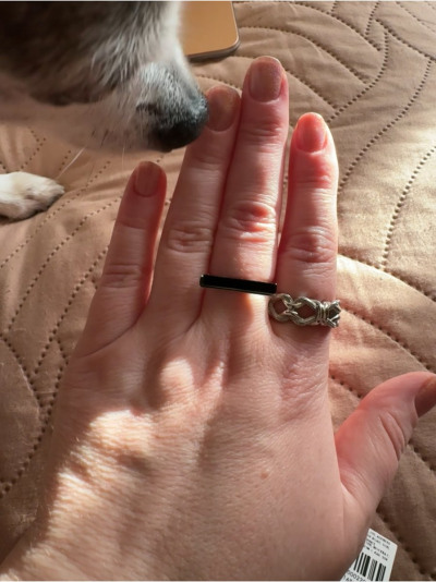 Ношу редко и соло, вроде интересное, но не со совсем удобное и сложно сочетать с другими кольцами