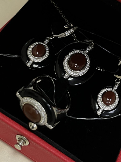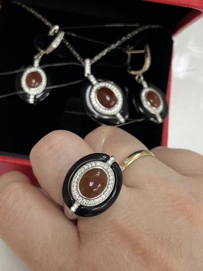 - ВставкаАгат природный, Фианит, Сердолик