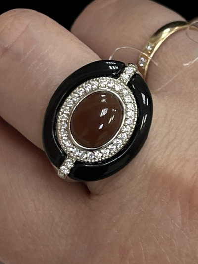Серебряное кольцо с фианитами, сердоликом и агатами природными