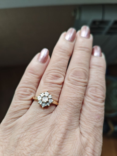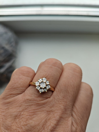 Колечко куплено в набор к сережкам. Очень нарядные сережки и колечко! Конечно к празднику, к новому году идеально. Блеск бриллиантов завораживает! Прекрасная работа мастеров! Спасибо за акции и скидки! Процветания Санлайт!