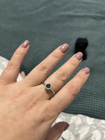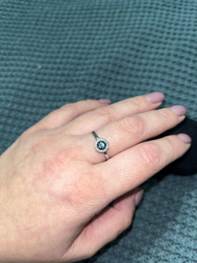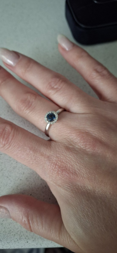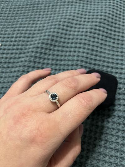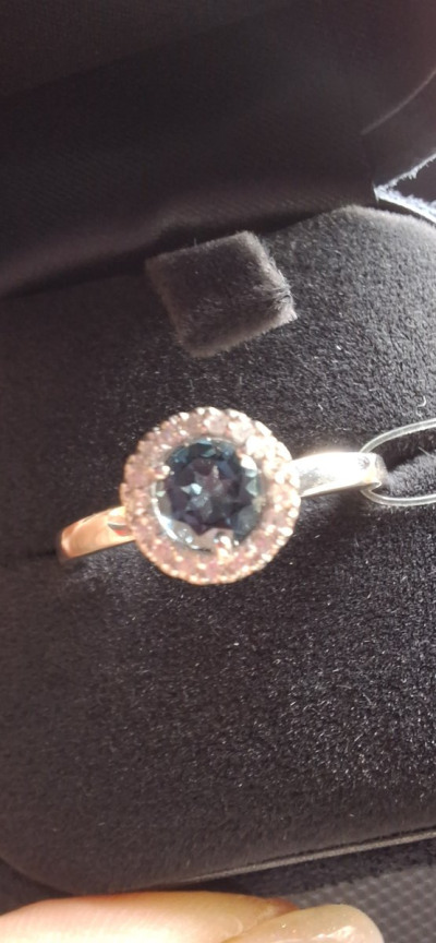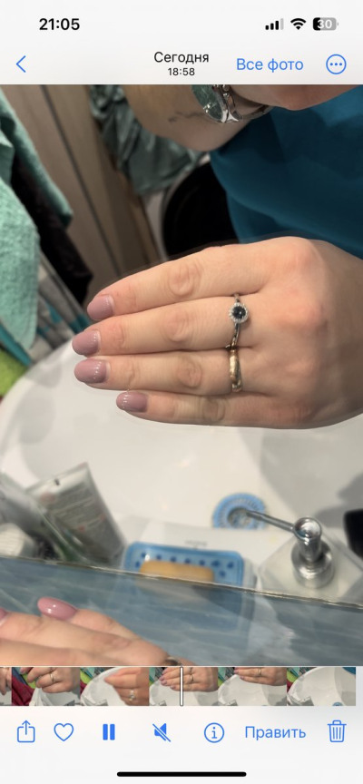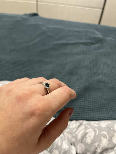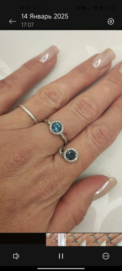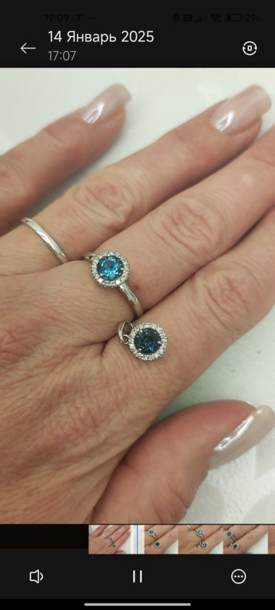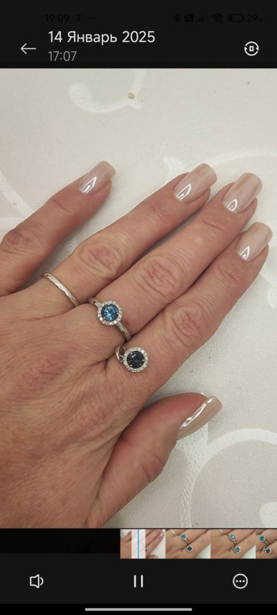 Приобрела комплект полностью. Но в кольце камень совсем другого оттенка он почему-то голубой, а не синий. На фото я сравниваю кольцо с кулоном. Получается совсем не комплект. В серёжках и кулоне синий камень, а в кольце голубой.🤷♀️ Забрали на экспертизу. Надеюсь, что увидят брак.