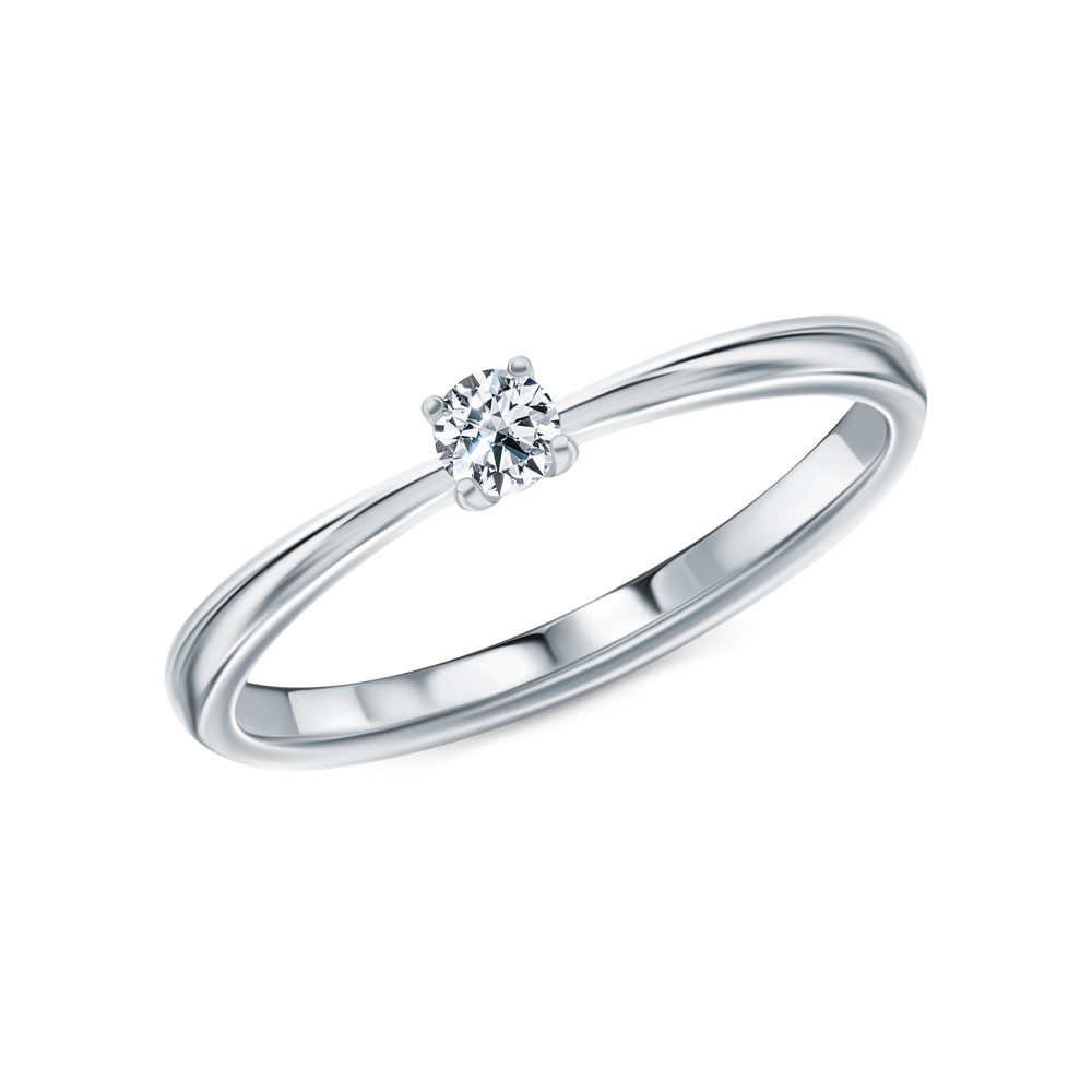 Кольцо «БРИЛЛИАНТЫ ЯКУТИИ» с 1 бриллиантом, 0.115 карат, огранка круг 57 граней, цвет 3, чистота 6, тип огранки А;