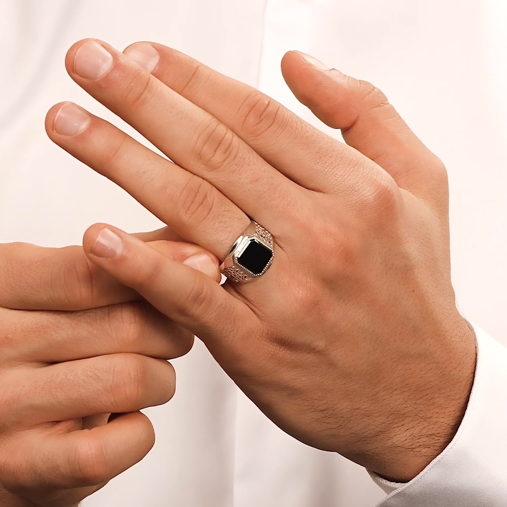 Это серебряное кольцо с фианитами - идеальный аксессуар для мужчин, подчеркивающий их статус и престиж. Изготовленное в России, оно весит 4.4 г и выполнено из серебра 925 пробы. Строгая геометрическая форма кольца гармонично сочетается с любым стилем одежды, будь то деловой костюм, фрак или спортивная одежда.