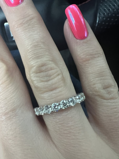 Очень красивое кольцо,усыпанное бриллиантами.Обычно ношу рядом с обручальным,смотрится красиво.