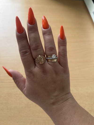 Колечко очень красивое. Давно уже хотелось его купить. На руке хорошо смотрится. Блестит. Я давольна покупкой. Спасибо за красивые изделия.