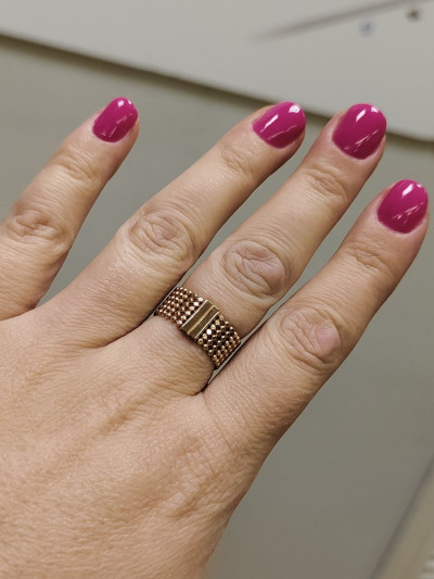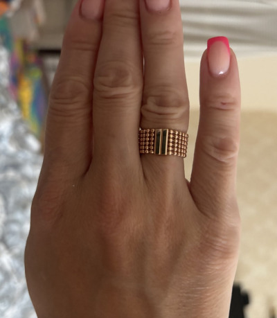 Кольцо интересное,но нужно брать на пол размера меньше,а-то и на размер очень растягиваеться.