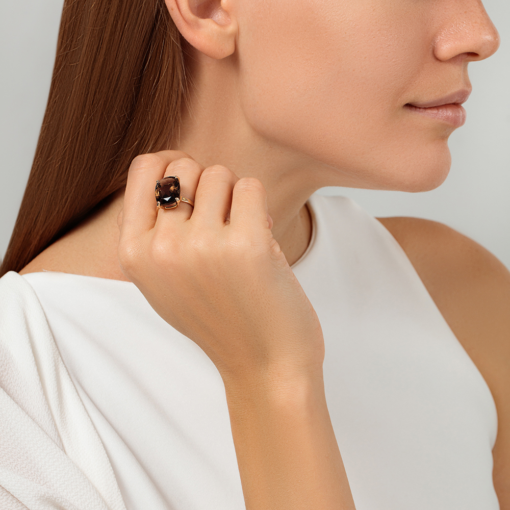 В редких случаях характеристики украшения или упаковка могут иметь отличия от представленных на фото или в описании.Кольцо с 1 кварцем дымчатым, 9.407 карат, тип огранки Б;