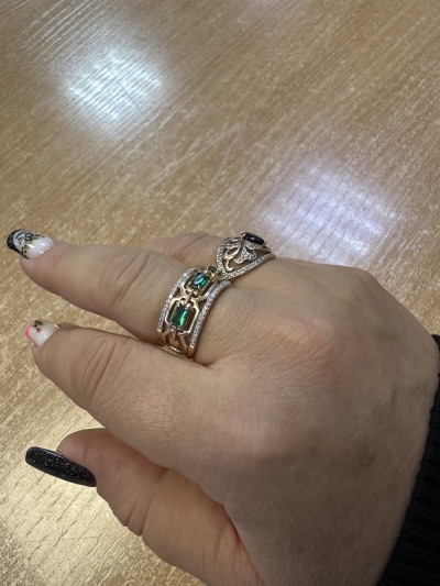 Очень оригинальное кольцо, выглядит богато. Сочетание бриллиантов с изумрудом великолепно 😻 Ну, как не купить??? Такие хорошие скидки на 8 марта! Спасибо , что делаете такие хорошие скидки, это мечта любой девушки.