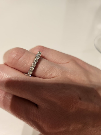 Очень красивое кольцо ,камера не передает всю красоту . У меня есть лайфхак что бы кольцо не царапалось , можно обметать пружинкой тонкой резиновой Регулировка размера . Мне например кольцо на безымянном велико А с этой пегилуровкоц могу носить спокойно и плюс кольцо не будет царапаться )) Ношу не каждый день а на выход, надеюсь камни будут целы . Хочу еще платиновое кольцо с одним камнем что бы в комплекте носить