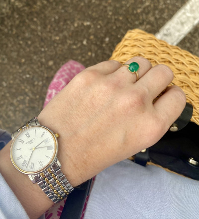 Лето ,жарко ,не ношу летом крупные кольца.Это хороший вариант ,гармонирует с серьгами с зелёным агатом .С браслетом и подвеской.Ярко и не навязчиво.Благодарю за скидку.