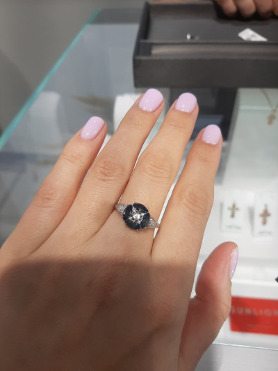 Колечко с сапфирами и бриллиантами из белого золота. Очень красивое.