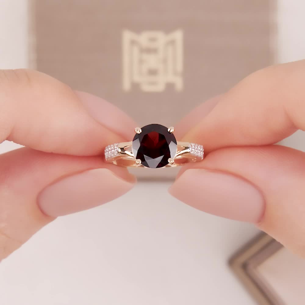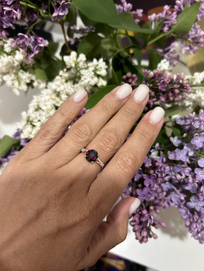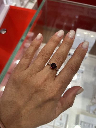 В редких случаях характеристики украшения или упаковка могут иметь отличия от представленных на фото или в описании.Кольцо с 1 гранатом природным, тип огранки В;