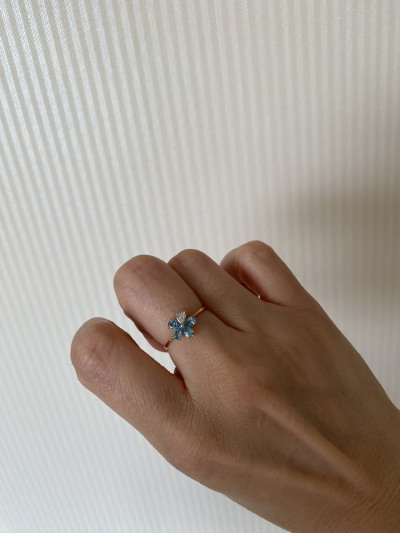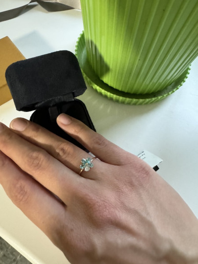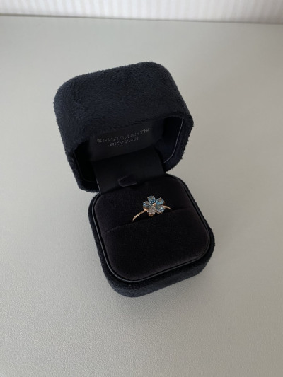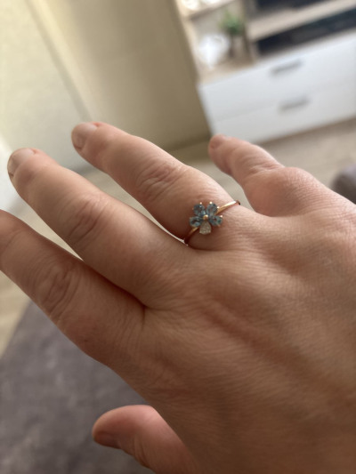 Долго искала подходящий цвет камней к серьгам, этот цветочек отлично их дополнил и форма и цвет подошли идеально! Кольцо смотрится нежно и интересно. Отдельное спасибо девушке консультанту, которая помогла определиться с размером, очень ей благодарна за правильное решение выбрать колечко меньшего размера!