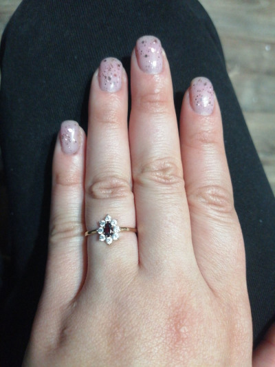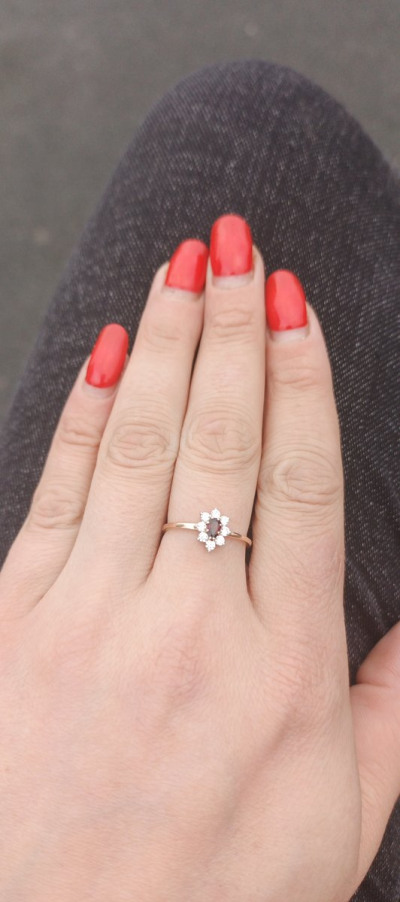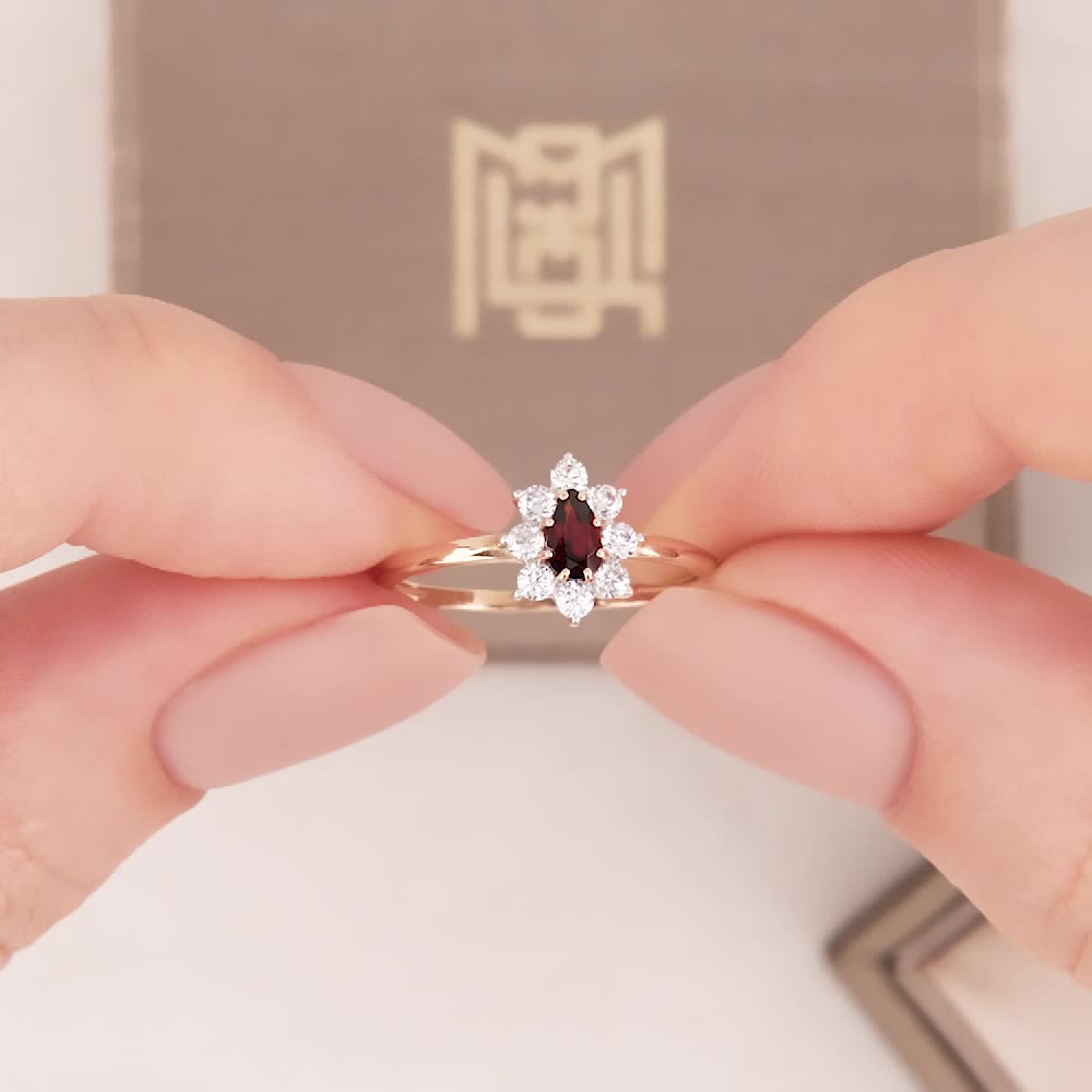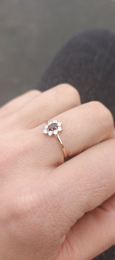 В редких случаях характеристики украшения или упаковка могут иметь отличия от представленных на фото или в описании.Кольцо с 1 гранатом природным, тип огранки Б;