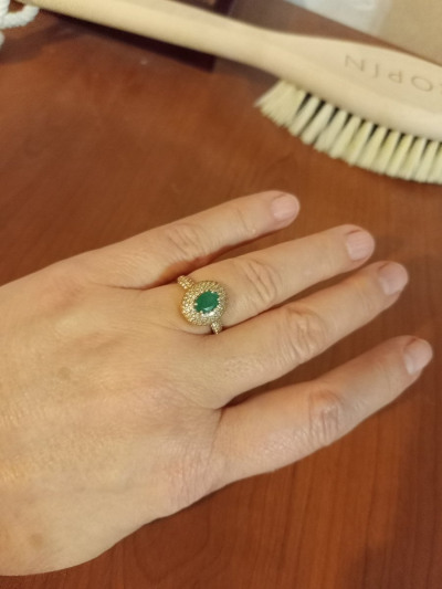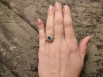 Кольцо красивое, изумруд не очень прозрачный, зато цвет красивый яркий. Ношу с удовольствием.