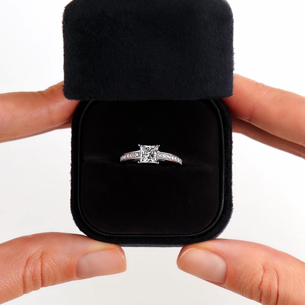Кольцо с 1 бриллиантом природным, 1 карат, огранка принцесса 65 граней, цвет 4, чистота 4, тип огранки А;