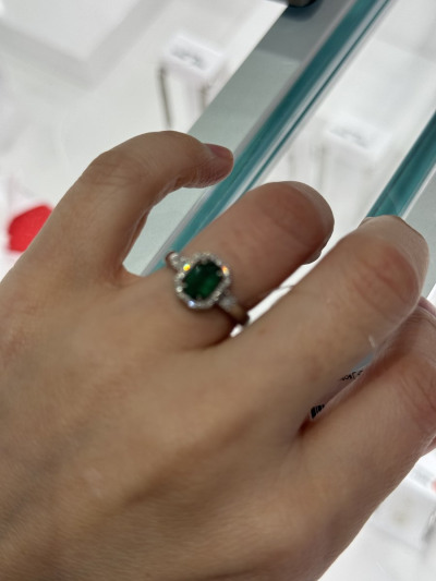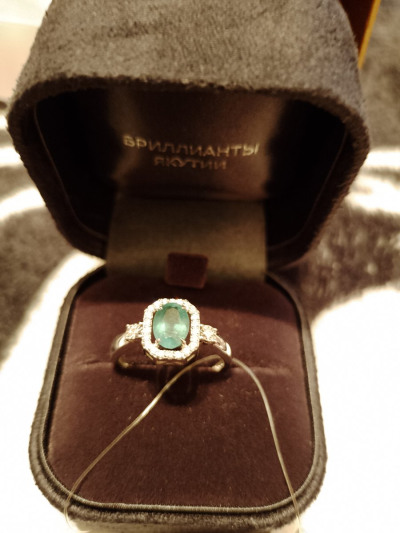 Очень красивое кольцо с натуральным изумрудом в белом золоте! Отлично смотрится, мелкие бриллианты красиво блестят и дополняют образ! Изумруд красивого зелёного цвета, 0.79 карат. Прилагается паспорт изделия и красивая подарочная упаковка! Хорошее обслуживание консультантов. Рекомендую к покупке!