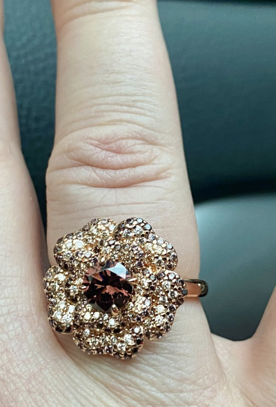 Отличное кольцо по вменяемой цене. Покупала по акции, кольцом очень довольна. Пришло заказанное кольцо быстро, камешки все на месте. Оно однозначно только на выход, или на какие то особенные моменты. РОСКОШНОЕ, сияющее, праздничное. Представляет из себя раскрытую розу. Форма кольца соблюдена, лепестки равные,никаких дефектов при осмотре я не нашла. Пломба есть чек выдают и присылают в приложение. Упаковали в магазине его отлично, распаковывать кольцо для фото в отзыв не стала, ибо оно уйдёт на подарок. Спасибо Санлайт за отличную акцию и бонусы!