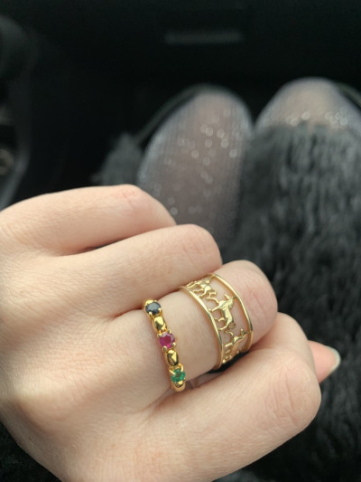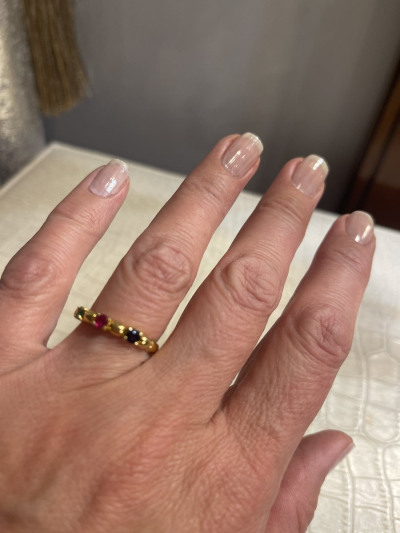 Очаровательное колечко с натуральными камнями. Неординарное. Яркое, радостное, запоминающееся. Купила в комплекте с серьгами. Все обращают внимание