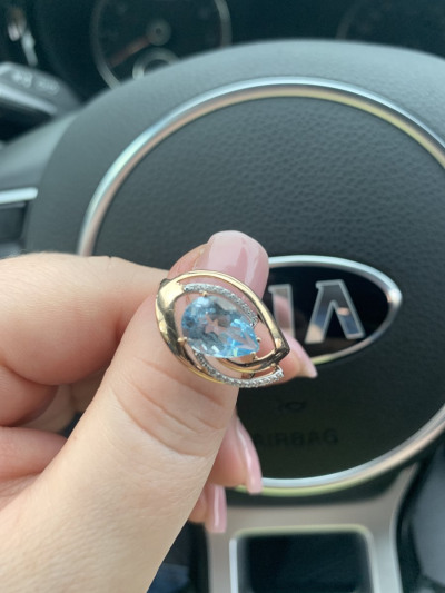 В редких случаях характеристики украшения или упаковка могут иметь отличия от представленных на фото или в описании.Кольцо с 1 топазом скай природным, тип огранки Б;