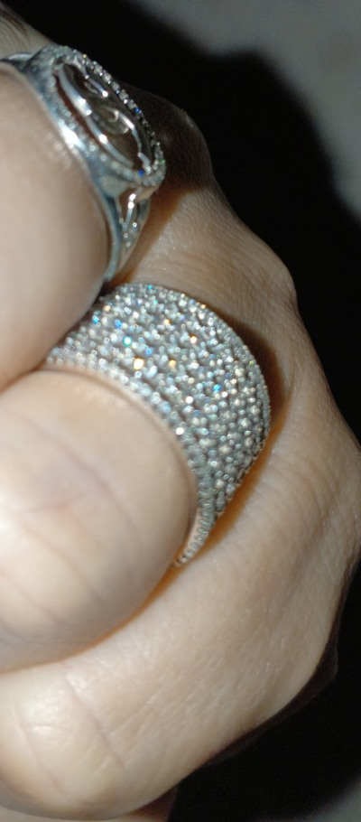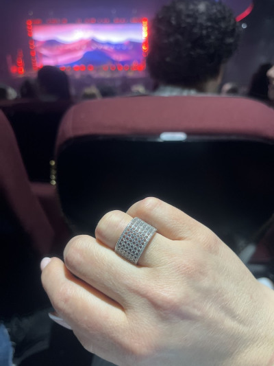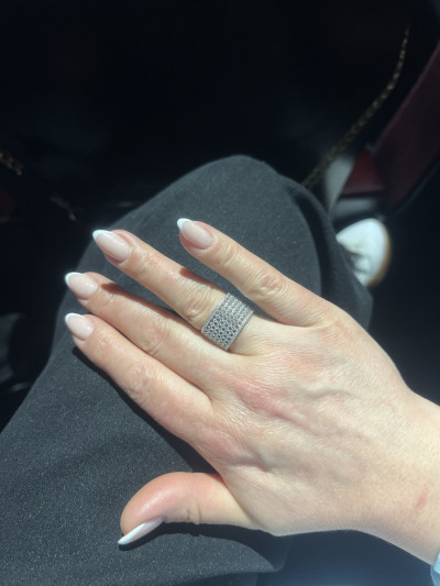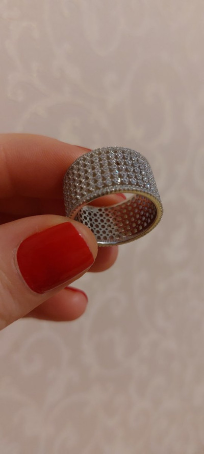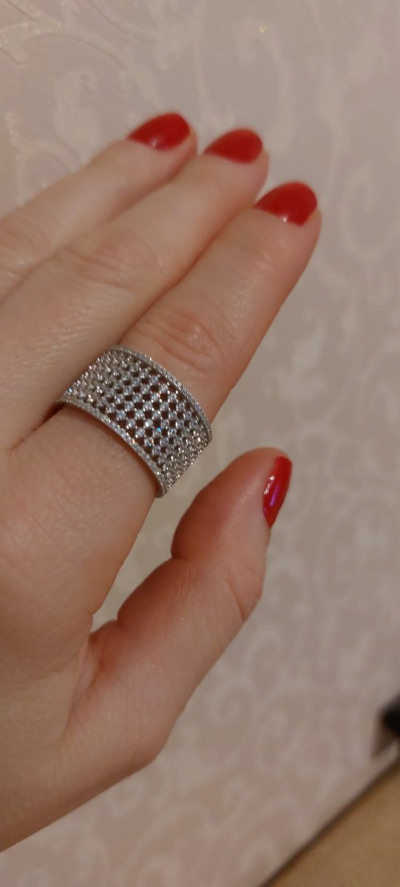 Очень-очень-очень красивое кольцо! Сверкает и переливается. На руке очень комфортно, ширина кольца совершенно не ощущается и не мешает. Невероятное))))