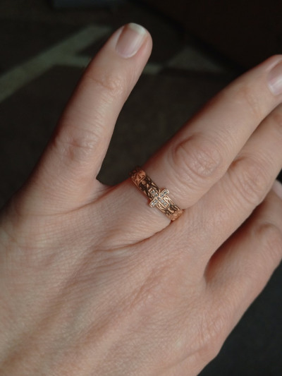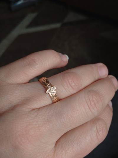 Долго думала какое колечко "Спаси и сохрани" приобрести.Было когда-то…потерялось.Выбирала из трёх вариантов.Остановилась на нём.Очень понравилось,как смотрится.Не цепляется,аккуратное,необычное.Спасибо!!!