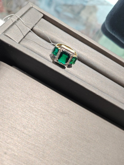 Золотое кольцо с бриллиантами природными и изумрудами выращенными