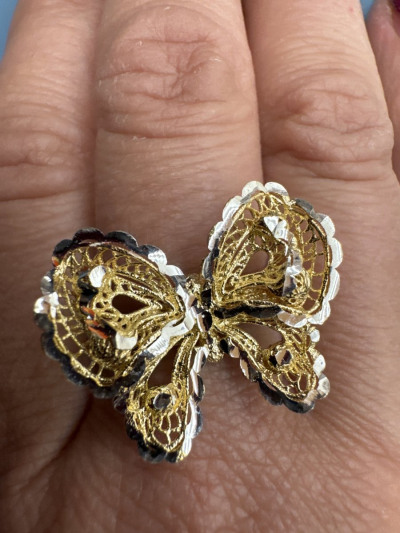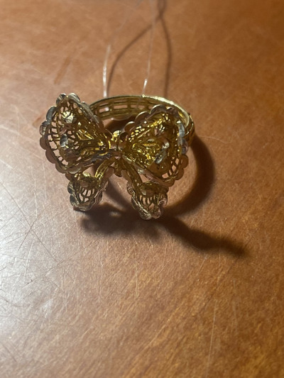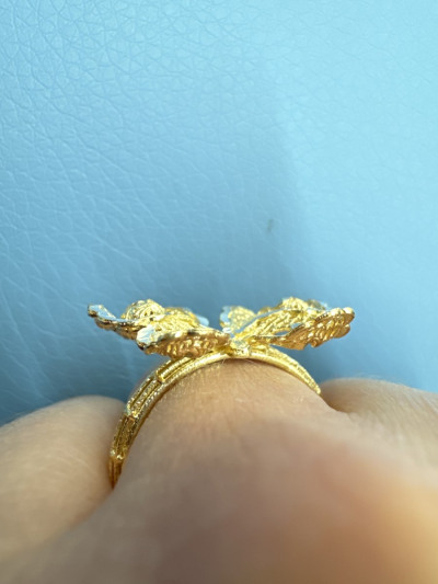 Очень красивое кольцо лёгкое, ажурное. Как поведёт себя позолота пока не известно. Кольцо купила к серьгам в форме цветов похожих на орхидею. Цветы, бабочки, они в природе всегда рядом.