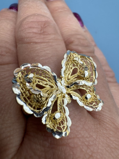 Серебро с позолотой кольцо БАБОЧКА ИТАЛИЯ крупное 2см-2,5см