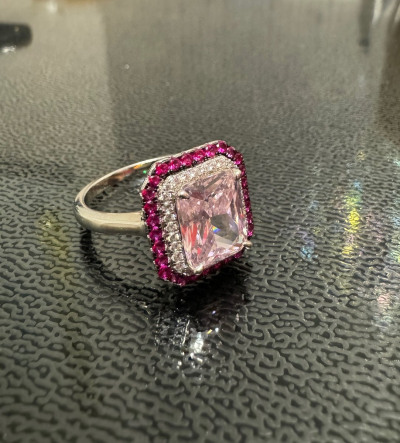 Серебряное кольцо с фианитами и корундом