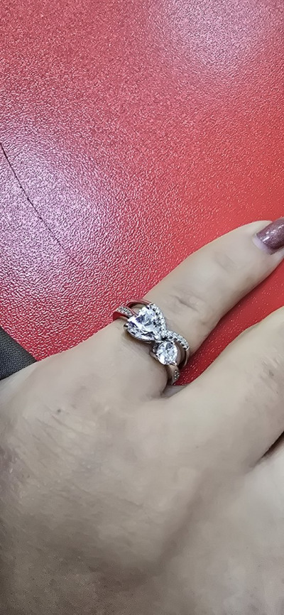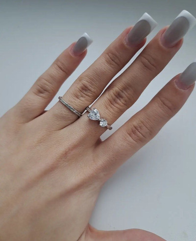 На День Метери 2025г, мне мой любимый 💞мужчина подарил такое нежное, изящное и стильное кольцо 💍 Смотрится эффектно, особенно в комплекте.🩶🩶 Оригинальный дизайн парных сердечек на кольце- 💣