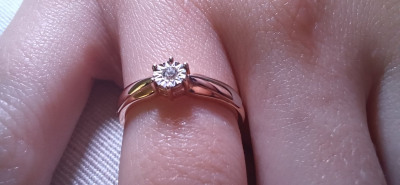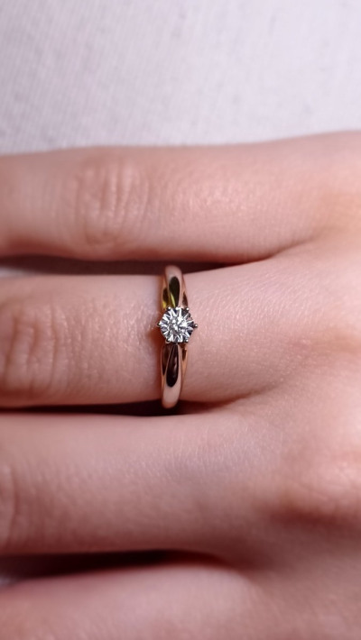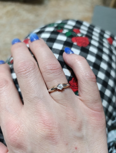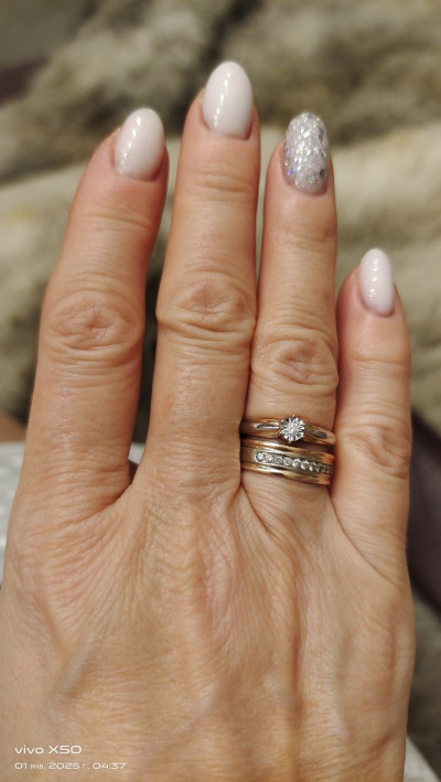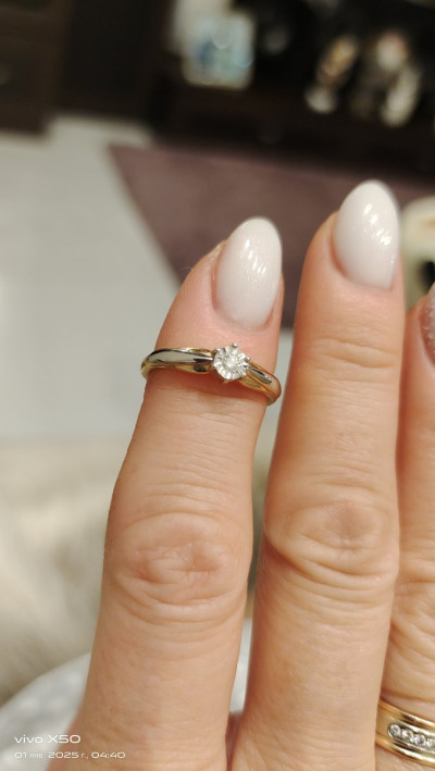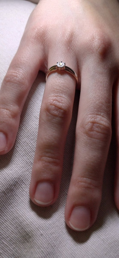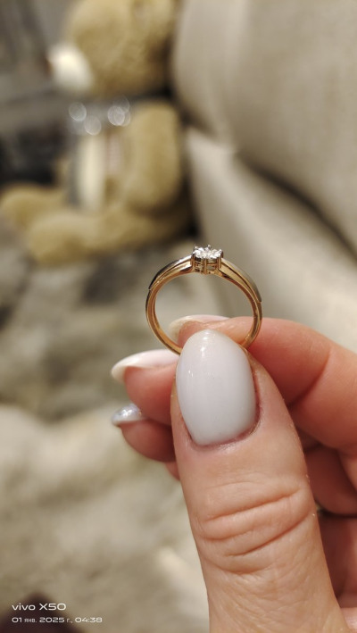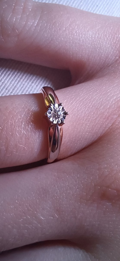 Очень красивое колечко, элегантное, со вставкой из белого золота, бриллиантик очень красиво переливается, давно хотела кольцо на палец с обручальным, много пересмотрела, это сразу очень понравилось и муж подарил на новый год!